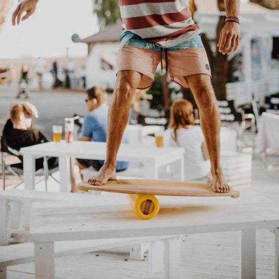- La dimension de la latéralité est le plus flagrant dans l’amélioration de la stabilité par rapport à l’observation de cette dimension sans objectif. Je comprends alors que la pratique du Wing Foil est équilibrante pour moi, elle est comme un antidote ! Je m’aperçois donc au travers de ces observations qu’il est important pour moi de sortir de mon sport habituel pour continuer d’apprendre. Bien qu’étant débutant avec encore beaucoup de chutes et d’imperfection : les progrès sont constants. J’ai même investi dans un plateau d’équilibre pour continuer à progresser à la maison (photo ci-dessous), ce qui est très enthousiasmant à pratiquer.